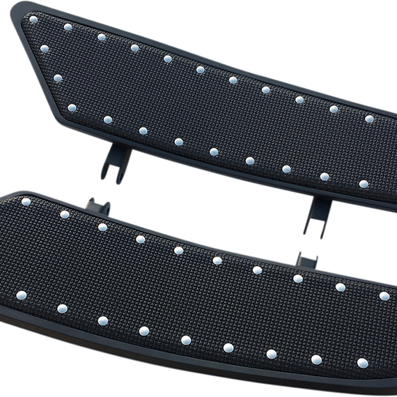 • Bowed floorboards feature machined billet construction, chrome-plated finish with black rubber inserts.