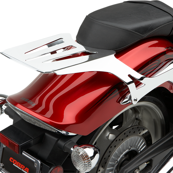Caracteristicas: Designed to work without a backrest Fabricated from solid-plate steel that has been laser-cut and formed Will not work with the Cobra Sissy Bar Made in the U.S.A.
