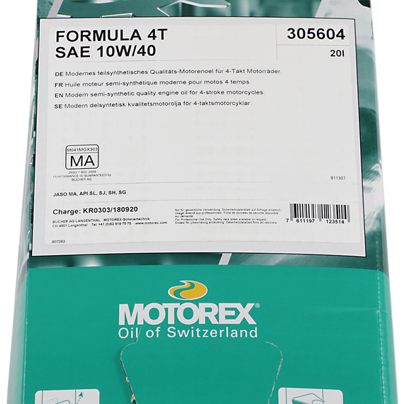 Caracteristicas: Modern semi-synthetic quality 4-stroke oil Provides thermal stability and good wear protection Catalytic converter tested Optimized clutch performance according to JASO MA Specifications: JASO MA 903:2006/API SL, SJ, SH, SG