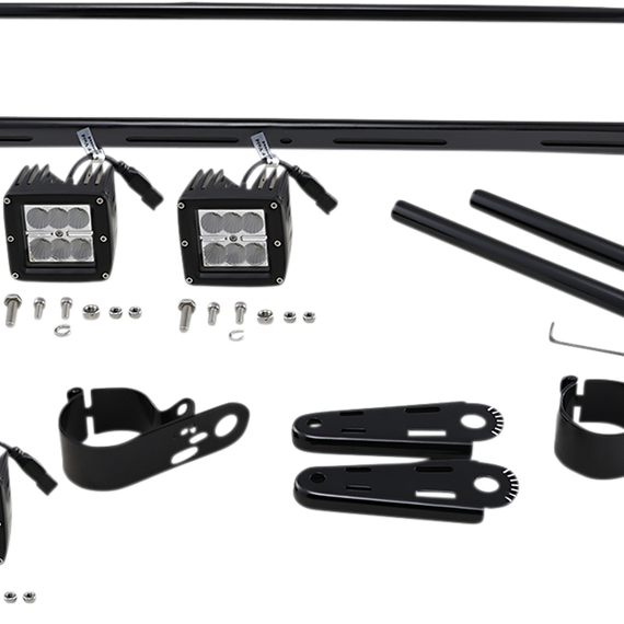 Caracteristicas: Include four high-intensity LED lamps - a combination of two spot beams and two flood beams Two 9W/54 Lumen 90° flood beam lamps with three 3W high-intensity Epistar LEDs Two 18W/1080 Lumen 8° spot beam lamps with six 3W high-intensity Epistar LEDs Die-cast aluminum housing with a scratch- and shatter-resistant polycarbonate lens 10-30V DC operating voltage Waterproof die-cast aluminum housing 6000K color temperature 30,000 hours usable life 3,240 total Lumens IP67 waterproof rating Multi-pivot mounting system is highly adjustable and telescopes from 39" to 60" to fit nearly any vehicle Wiring harness with fuse and switch, all necessary wiring connectors and terminals, mounting brackets and hardware included
