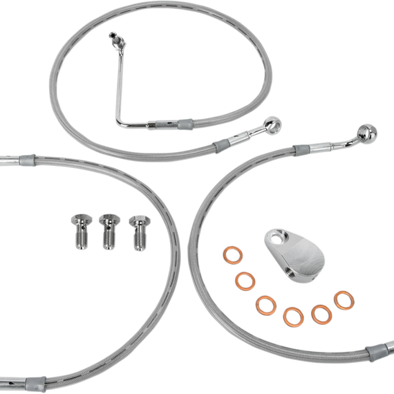 Caracteristicas: Outer is superior in pressure rating, flame resistance and volumetric expansion to all other materials, including aramid, resulting in unmatched stopping power Hose features clear PVC coating, PTFE inner liner, and premium stainless steel braided outer Comes complete in attractive clamshell packaging with installation hardware Meet DOT and TÜV specifications, allowing on-road usage worldwide