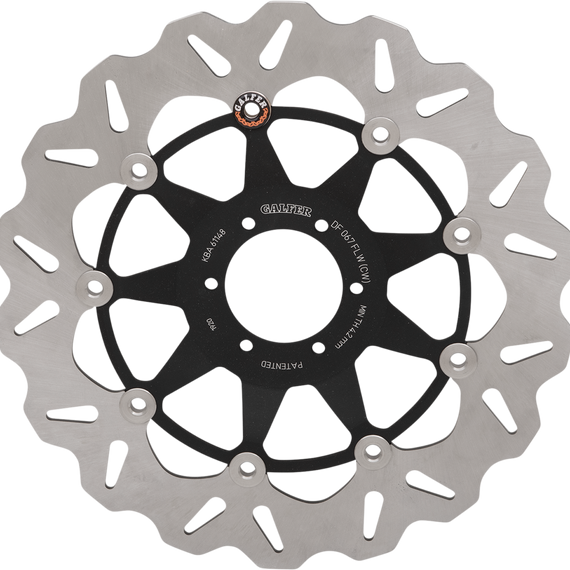 Caracteristicas: Laser-cut double disc ground 420 high carbon stainless steel Direct-replacement brake rotors; do not require any extra parts, bolt on just like a stock brake disc Full-floating design rotors have an aluminum center carrier Improves brake lever feel and modulation Rotors cool as they rotate to lower brake operating temperatures Design is self-cleaning, removes water as it rotates Less tendency to warp Manufactured in Spain For maximum braking performance and rotor longevity, Galfer recommends using Galfer brake pads with Galfer rotors.
