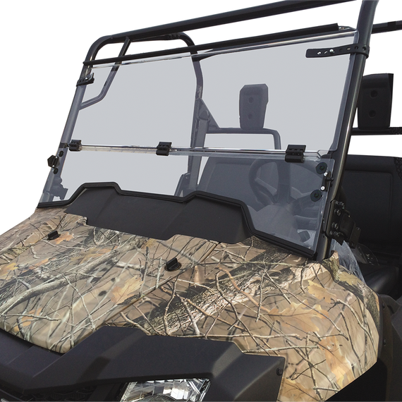 Caracteristicas: Made from premium .177" thick polycarbonate shield Centrally hinged for ventilation Tool-less operation Mounts to the roll bar using stainless steel rubber coated mount straps Windshields feature a rubber seal to help keep the elements out; replacement kit with 6' rubber seal available separately Made in the U.S.A.