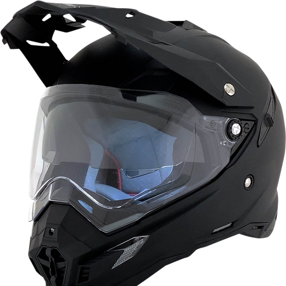• A flip-up, flush-fit, quick-release, single turn-screw face shield with side covers; shield itself is curved, optically correct compound, which is scratch-resistant and protects against UV-rays
