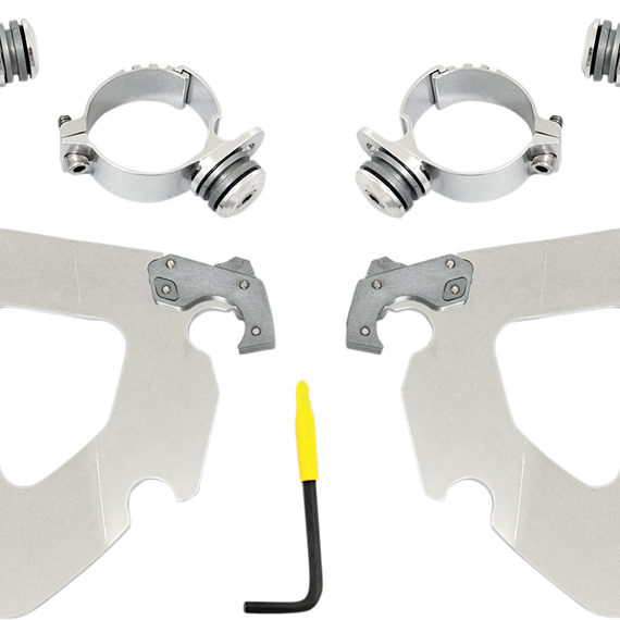 Caracteristicas: Angle Adjustable Model specific no-hassle installation, then on-off without tools. A pair of glass-filled nylon latches lock it down until the spring loaded "Trigger-Locks" are intentionally disengaged. Made exclusively of electrocoated aluminum and stainless steel, with stainless steel fasteners. Anchoring hardware is the same for all windshields and fairings for each bike. Made in the U.S.A. - Made in Memphis!