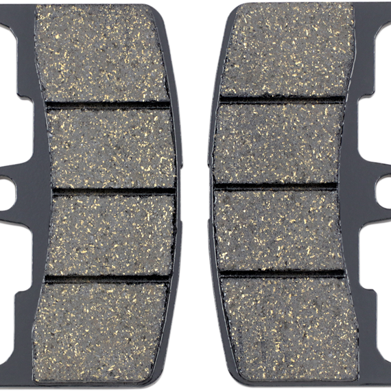 Caracteristicas: Our next step up in performance is the Gold+ This is a harder pad than the Z+ with 20% more stopping power than a sintered pad and is half the weight Runs cooler, with little to no noise or dust This is a great pad for putting on a stock Harley Made in the U.S.A.