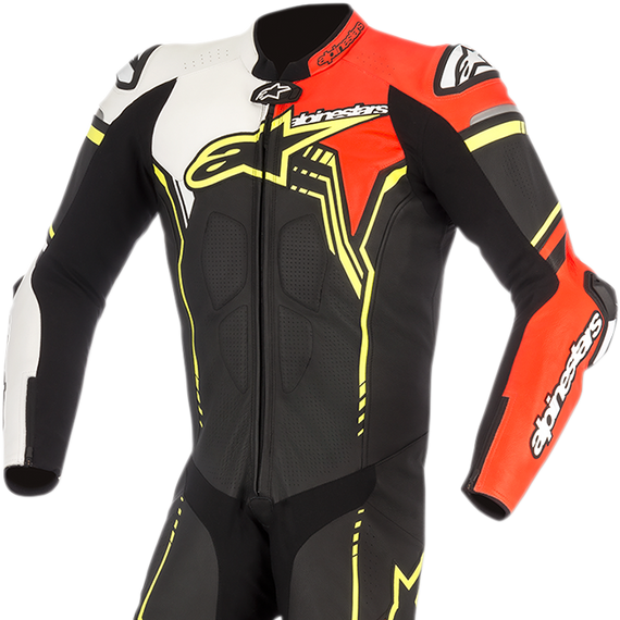 GP Plus v2 1-Piece Leather Suit - Black/White/Red Fluorescent/Yellow Fluorescent - US 46 / EU 56