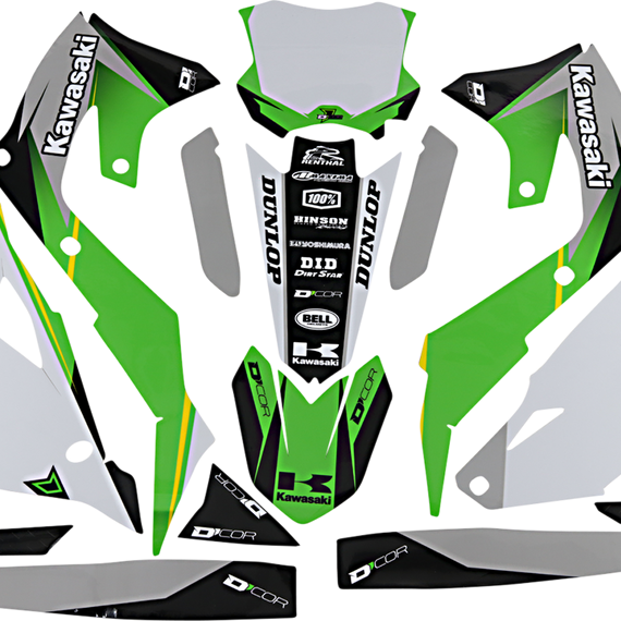 Caracteristicas: Includes decals for radiator shrouds, tank, number plate, airbox, lower fork guards, front fender, rear fender and swingarm