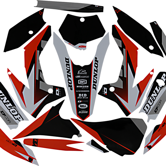 • Includes decals for radiator shrouds, tank, number plate, airbox, lower fork guards, front fender, rear fender and swingarm