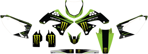 Caracteristicas: Includes decals for radiator shrouds, tank, number plate, airbox, lower fork guards, front fender, rear fender and swingarm