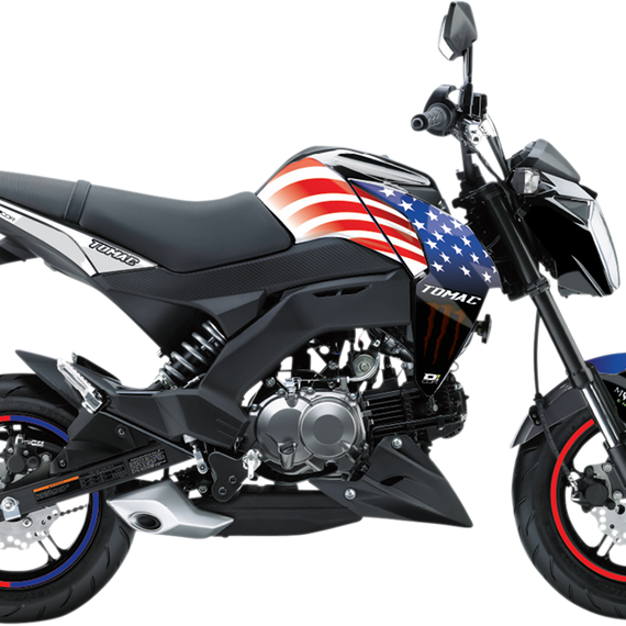 • Graphic Kit includes graphics for tank shroud, front and rear fender, side panel, and rim strip