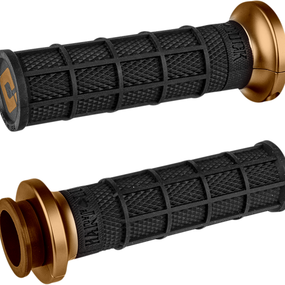 Caracteristicas: Moto-inspired grip system specifically designed for your performance V-Twin Medium-compound materials provide excellent durability and comfort Full-waffle moto-pattern reduces vibration/provides improved grip in all conditions Heavily knurled base-pattern delivers solid traction and control Billet-aluminum clutch-side clamp ensures 100% slip-free security (eliminates the need for set-screws) T15 Torx bolts ensure extra-secure clamping for solid, twist-free mounting Proudly made in the U.S.A.