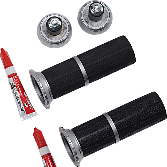 Caracteristicas: Grips have MX styling for a thin profile and aggressive look Grip housings are cast aluminum Soft, durable premium EPDM rubber grip compound inserts Trim rings are cast aluminum