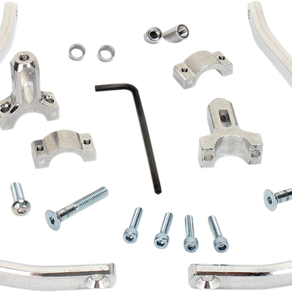 Caracteristicas: 6061 T-6 aluminum handguards for mini (80cc-125cc), standard and oversized handlebars Wide radius bend for plenty of hand and lever space Curved to fit Moose Racing Competition handguard protectors All mounting hardware included Mini fits 65cc-85cc 2-stroke bikes and 70cc-125cc 4-stroke bikes Made in the U.S.A.