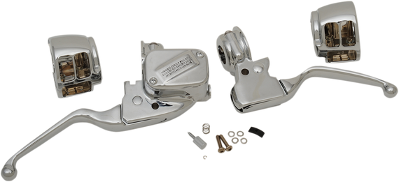 Caracteristicas: Kits include master cylinder assembly, clutch lever assembly, die-cast switch housings with radiused edges and OEM-style clamps Kits for 11-15 Softails/12-16 Dynas accept only OEM switches, all other kits accept 96-11 style switches and wiring (sold separately) Master cylinders accept OEM-style rebuild kits Not for use on models with cruise control