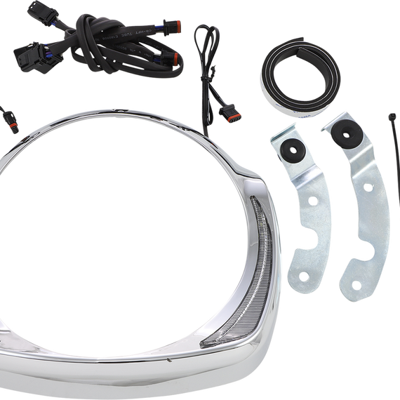 Caracteristicas: Easy installation includes everything you need to mount and plug into your accessory port with no cutting, drilling, or splicing Custom light housing gives you a unique new look Bright white LEDs automatically turn on and off with your headlight Amber turn signals Clear polycarbonate lens Available in chrome or black Removable light housing makes painting to color match easy