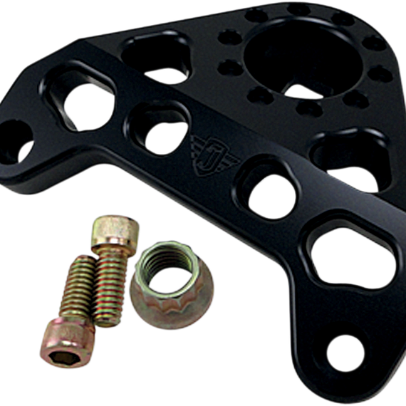 Caracteristicas: Give your Sportster's stock headlight a touch of cool billet with one of these bracket assemblies Eliminates that old-fashioned, die-cast metal "cowl" look over your headlight Fully CNC-machined from a solid 1-1/2" thick block of 6061 T-6 aluminum; 4.125" on-center mounting holes Inspired with aircraft design technology that ties-in with Joker's entire Sportster line Easily installs in minutes and gives your bike a dramatic look Gold-finished alloy mounting bolts and a cool 12-point nut are included Headlight adjustment capability is identical to the die-cast OEM bracket Made in the U.S.A.