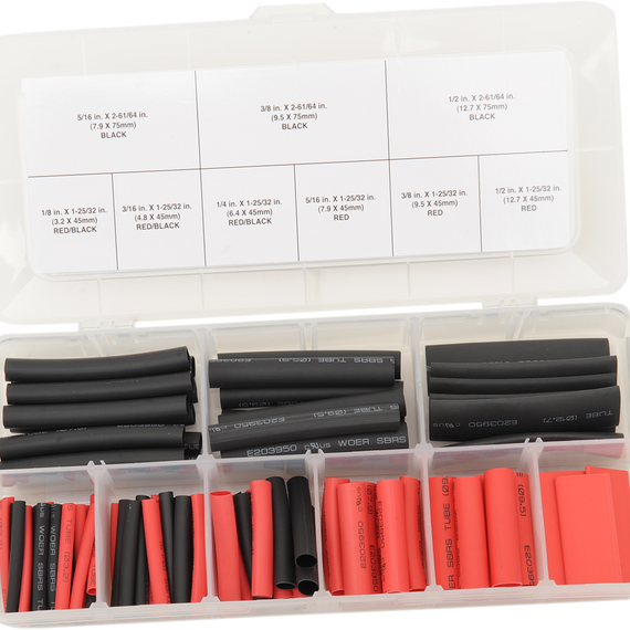 • Includes black and red colors in 1/8", 3/16", 1/4", 5/16", 3/8" and 1/2" diameters