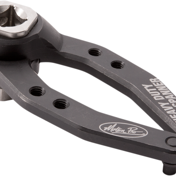 Caracteristicas: Designed for removal and installation of shock reservoirs, screw-in seal heads, fork caps, and bearing retainers Arms span freely pivot a range of 10.5 mm to 150 mm Interchangeable 3 mm, 4 mm, and 5 mm pins Curved, low profile arms easily fit tight areas Maximum torque rating of 70 lbs-ft