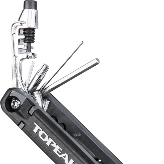 • A 21- functioning multi-tool with updated design to store T15, T25, 8 mm hex tool bits and side mounted tire levers securely