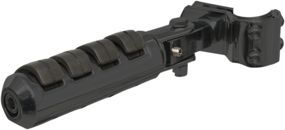 Caracteristicas: All-steel construction Work on 1-1/4” diameter engine guards Pegs feature anti vibration rubber pads RIVCO exclusive setscrew angle adjustment offers maximum comfort Clamps grip securely, will not slip or mar engine guards Pegs can fold up Made in the U.S.A.