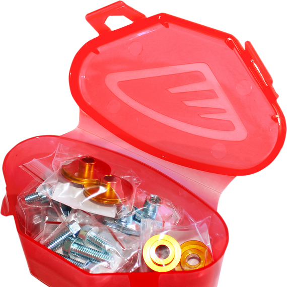 Caracteristicas: Designed to help you maintain and restore your bike 10.9 OEM grade & original factory configuration for precise fit Includes bolts for front fender, rear fender, fork guards, side panels, front number plate, seat and radiator shrouds (and air box on applicable models) Race Ready Carry Capsule included for convenience & organization Fitment spans multiple years and models, thus bonus hardware may result based on which year/model fastener kit is applied to