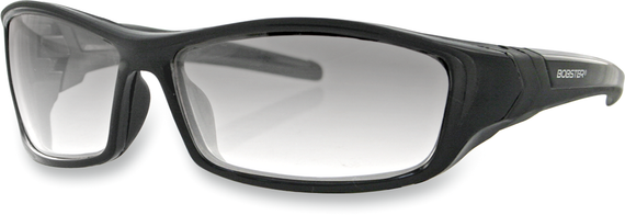 Caracteristicas: Photochromic lenses and sleek lines make these sunglasses ideal for any ride Gloss black Grilamid® TR-90 wraparound frames with a slight "cup" on the edges to reduce wind without needing foam Photochromic polycarbonate lenses provide 100% UVA/UVB protection; shift from a light tint to medium gray Feature VLT rate of 85%-32% Microfiber carrying pouch included Accept prescription lenses (not included)
