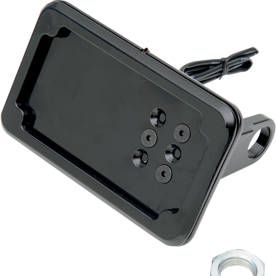 Caracteristicas: Billet aluminum with no visible fasteners Most tucked-in holder on the market today Mounts off the axle on FXST/FLST model applications and off the axle adjuster on FXD/XL applications Accepts most 4" x 7" license plates Not for use with shock relocation kits or saddlebags Made in the U.S.A.