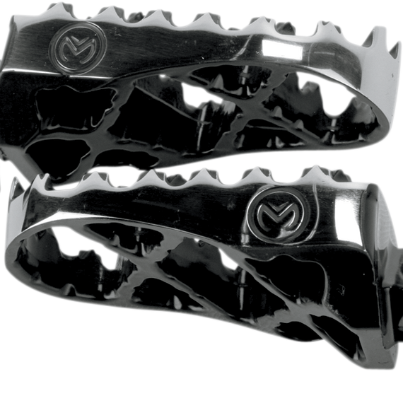 Caracteristicas: Each footpeg is cast, heat treated, and hardened from 17-4 stainless steel, given a solution annealing treatment, and age hardened for superior strength Width (57mm) and length (90mm); slightly convex platform for better boot positioning and grip when leaning forward or back Dual plane teeth provide traction without the "stuck" feeling Available with 1/2" rear offset to allow more space Made in the U.S.A.