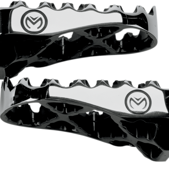 Caracteristicas: Each footpeg is cast, heat treated, and hardened from 17-4 stainless steel, given a solution annealing treatment, and age hardened for superior strength Width (57mm) and length (90mm); slightly convex platform for better boot positioning and grip when leaning forward or back Dual plane teeth provide traction without the "stuck" feeling Available with 1/2" rear offset to allow more space Made in the U.S.A.
