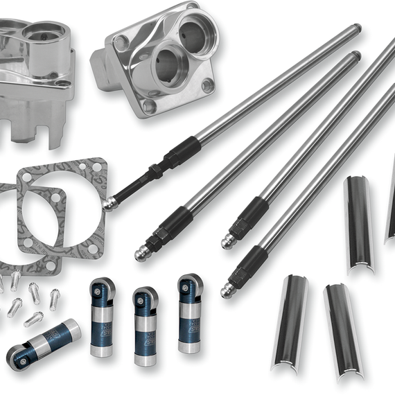 Caracteristicas: Fully engineered to utilize Evolution lifters and cams in Shovelhead engines Includes polished billet lifter blocks, 84-99 style lifter set, gaskets, pushrod clips, mounting hardware and a set of Quickee pushrods Evolution cams are sold separately (see FatBook™ for cam selections) Allows for top end oiling through the pushrods when used with S&S billet Shovelhead rocker covers (sold separately) Made in the U.S.A. Kit requires the use of S&S roller rocker arms (sold separately).
