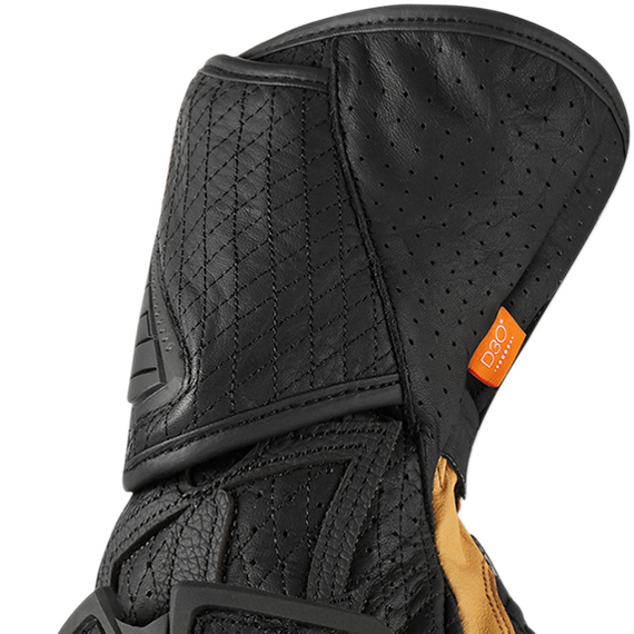 Caracteristicas: French cowhide backhand is supple, strong, and provides excellent comfort and flexibility Kangaroo palm - a hallmark of purpose-built track gloves - provides optimum abrasion resistance and dexterity Panels of digital BattleHide™ goatskin are used in areas of high wear from grips Mechanical articulation panels, which run the length of each finger, provide excellent flexibility from the very first time you wear the gloves ICON’s exclusive floating knuckle allows for maximum knuckle articulation, and an out-seamed finger box for all day comfort. Not for sale in California