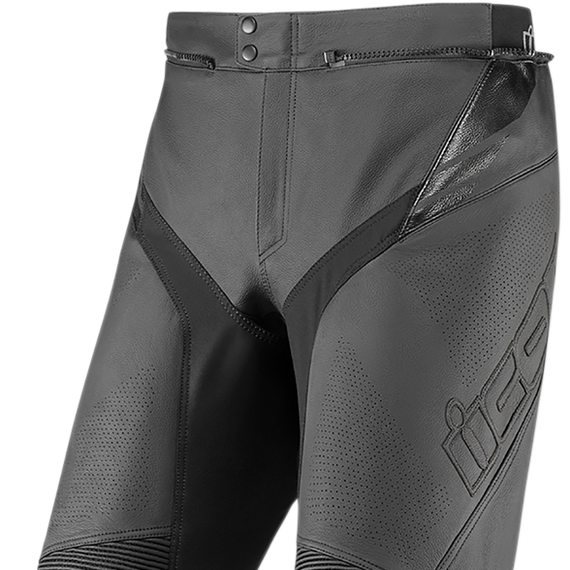 Caracteristicas: 1.1-1.3mm TracSpec™ leather and textile chassis, coupled with ICON's Attack Fit D3O® knee and hip impact protectors with integrated knee and lumbar flex zones The tailored fit is accompanied by a comfortable elastic waistband Elite on the street or at home on the track, the Hypersport Prime™ pant accepts replaceable nylon knee sliders and includes a waist zipper so you can easily connect them to your Hypersport Prime™ jacket.