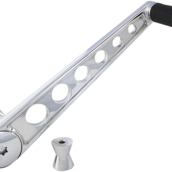 Caracteristicas: Perfectly complements the Bagger Nation E-Beam Shift Lever and Stealth Heel Shift Lever Made from a solid piece of 6061-T6 billet aluminum Accepts Bagger Nation, OEM and most popular toe peg styles Spacer is included for optional extended peg reach Fully adjustable peg position when extended reach is desired