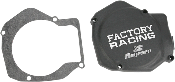 Caracteristicas: Look like a professional with the Factory Ignition Cover Seals properly, guarding inside of engine from dirt and water and outlasts stock covers Boyesen Factory Covers are cast from the highest grade of aluminum and are strong yet lightweight Super-tough, powder-coated finish resists weathering and wear and tear OEM paper gaskets can be reused, or use the supplied O-ring