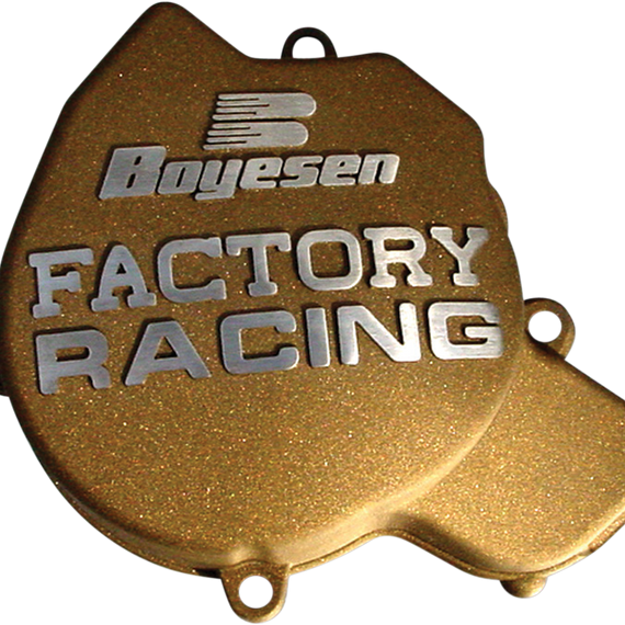 Caracteristicas: Look like a professional with the Factory Ignition Cover Seals properly, guarding inside of engine from dirt and water and outlasts stock covers Boyesen Factory Covers are cast from the highest grade of aluminum and are strong yet lightweight Super-tough, powder-coated finish resists weathering and wear and tear OEM paper gaskets can be reused, or use the supplied O-ring