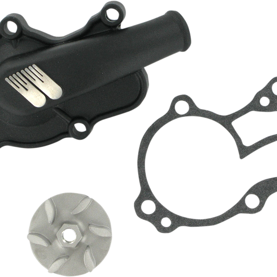 Caracteristicas: An aluminum investment-cast water pump cover and impeller combo; specifically designed to enhance the performance of your engines cooling system This high-flow, hydrodynamic water pump kit has been tested and designed to flow more coolant By increasing the flow at all rpm ranges, the engine will run cooler at a more constant temperature Patented nautilus style impeller for hydrodynamic efficiency Extend engine life