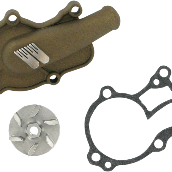 • An aluminum investment-cast water pump cover and impeller combo; specifically designed to enhance the performance of your engines cooling system