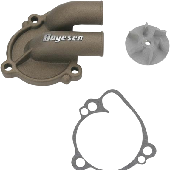 • An aluminum investment-cast water pump cover and impeller combo; specifically designed to enhance the performance of your engines cooling system