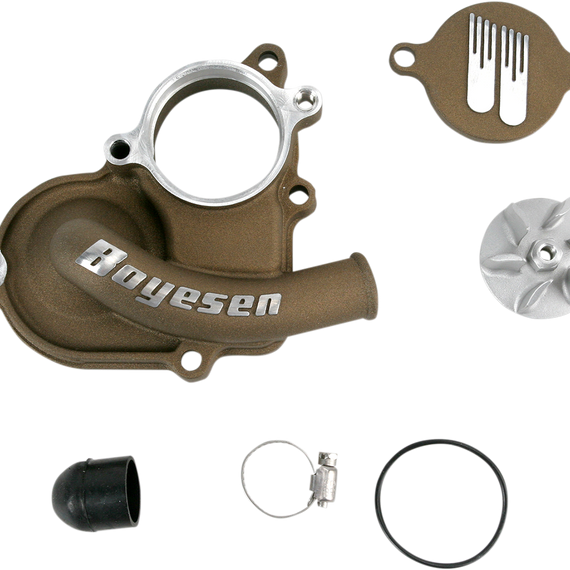 • An aluminum investment-cast water pump cover and impeller combo; specifically designed to enhance the performance of your engines cooling system