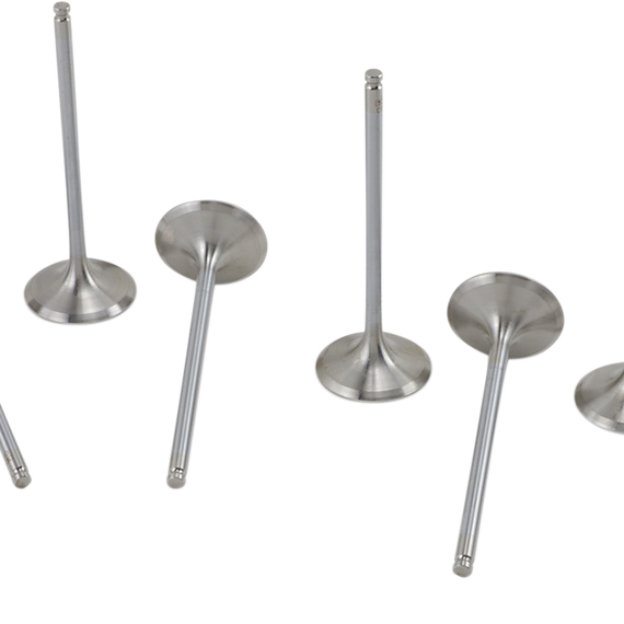 Caracteristicas: High-grade alloys allow the valves to withstand high heat and still maintain roundness Chromed coating on all stainless valves Micro-polished stems for smoother finish and less friction resulting in improved performance Multi-angle back cuts for enhanced flow Track tested and proven design on the world's fastest pro-street and pro-mod motorcycles Each kit includes eight valves