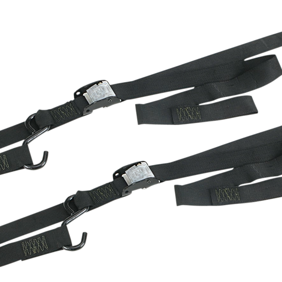 • Two-pack of tie-downs featuring cam-buckle, full-size S-hooks, soft-tie and looped end