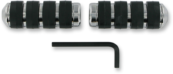 Caracteristicas: Give you a custom look and dampen vibration Interchangeable ends allow use on early or late-style footpeg mounts Hollow-core neoprene inserts are long lasting The Trident design offers a new look to the original ISO™ pegs Pegs without male-mount ends require the use of Kuryakyn footpeg adapters ISO®-Pegs components are not compatible with other footpegs such as the Soft-Ride style.