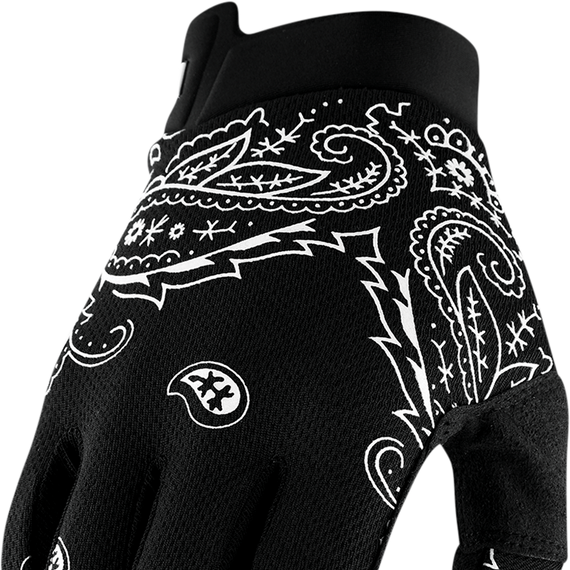 Caracteristicas: Seamless mesh top hand improves fit over knuckles and increases airflow Thumb overlap reduces blisters Perforated single-layer Clarino palm improves comfort and reduces bunching Silicone printed palm and finger graphics improve palm and lever traction