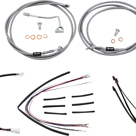 • Kits include extended brake line, extended clutch cable/clutch line, extended throttle/idle cables as required and all necessary wiring