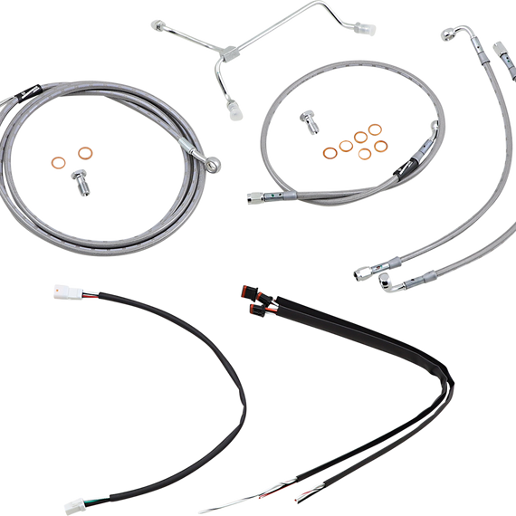 • Kits include extended brake line, extended clutch cable/clutch line, extended throttle/idle cables as required and all necessary wiring