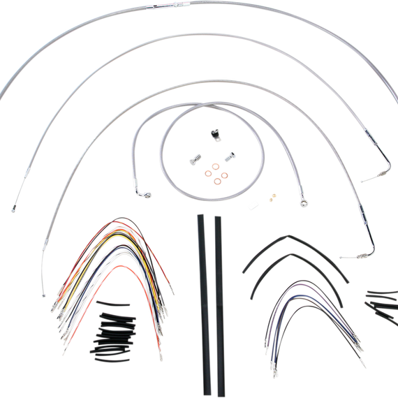 Caracteristicas: Complete installation kit for Burly Ape hangers Kits include extended brake line, extended clutch cable/clutch line, extended throttle/idle cables as required and all necessary wiring Brake lines feature PTFE inner liner and heavy-duty stainless steel outer braid Dresser kits reuse stock Throttle-By-Wire harness Kits are based on using 2" risers with ape hanger-style handlebars