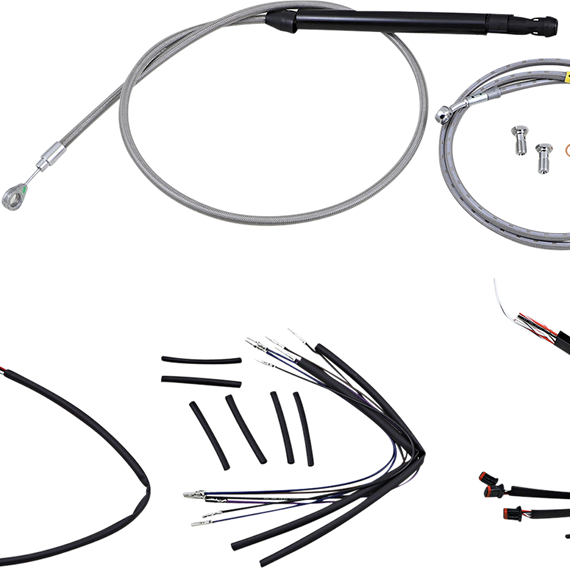 Caracteristicas: Complete cable/line installation kits Kits include extended brake line, extended clutch cable/clutch line, extended throttle/idle cables as required and all necessary wiring extensions Brake lines feature PTFE inner liner and heavy-duty stainless steel outer braid Made in the U.S.A. Kits are based on using 2” risers with Ape hanger-style handlebars