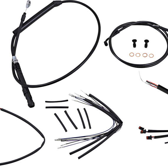 Caracteristicas: Complete cable/line installation kits Kits include extended brake line, extended clutch cable/clutch line, extended throttle/idle cables as required and all necessary wiring extensions Brake lines feature PTFE inner liner and heavy-duty stainless steel outer braid Made in the U.S.A. Kits are based on using 2” risers with Ape hanger-style handlebars