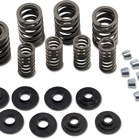 Caracteristicas: Chromoly retainers Features interference-wound double springs with a damper Includes 10° super keys and lower seats For use with cam lifts up to .600" Seat pressure 160 lb Made in the U.S.A.